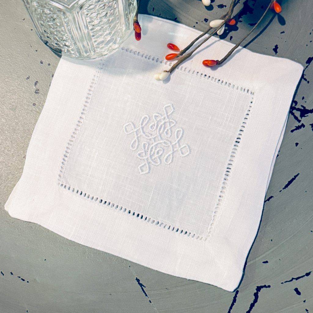 Olive Monogrammed Cocktail Napkins, Set of 4