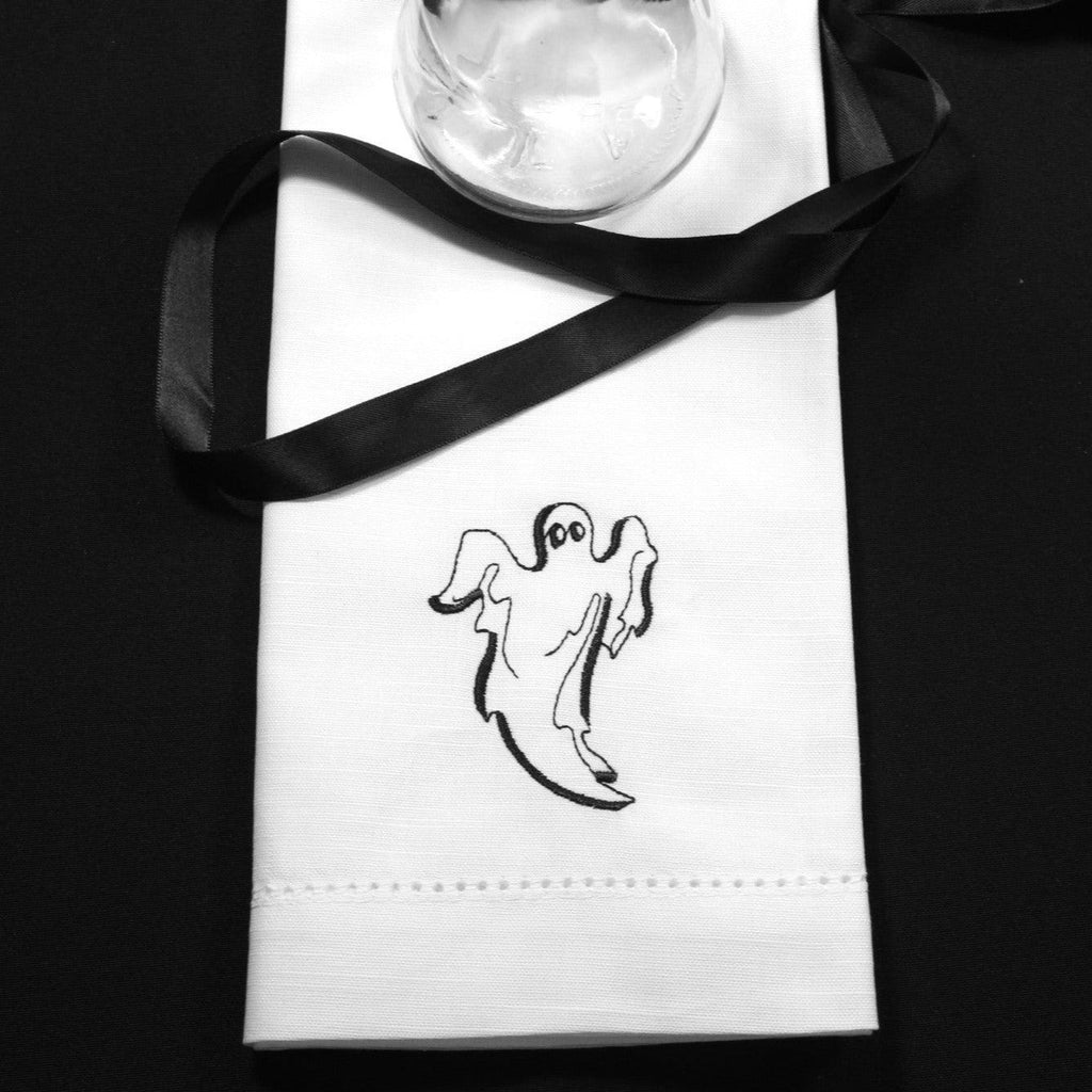 Scare your guests with a set of 4 spooky ghost cloth napkins!